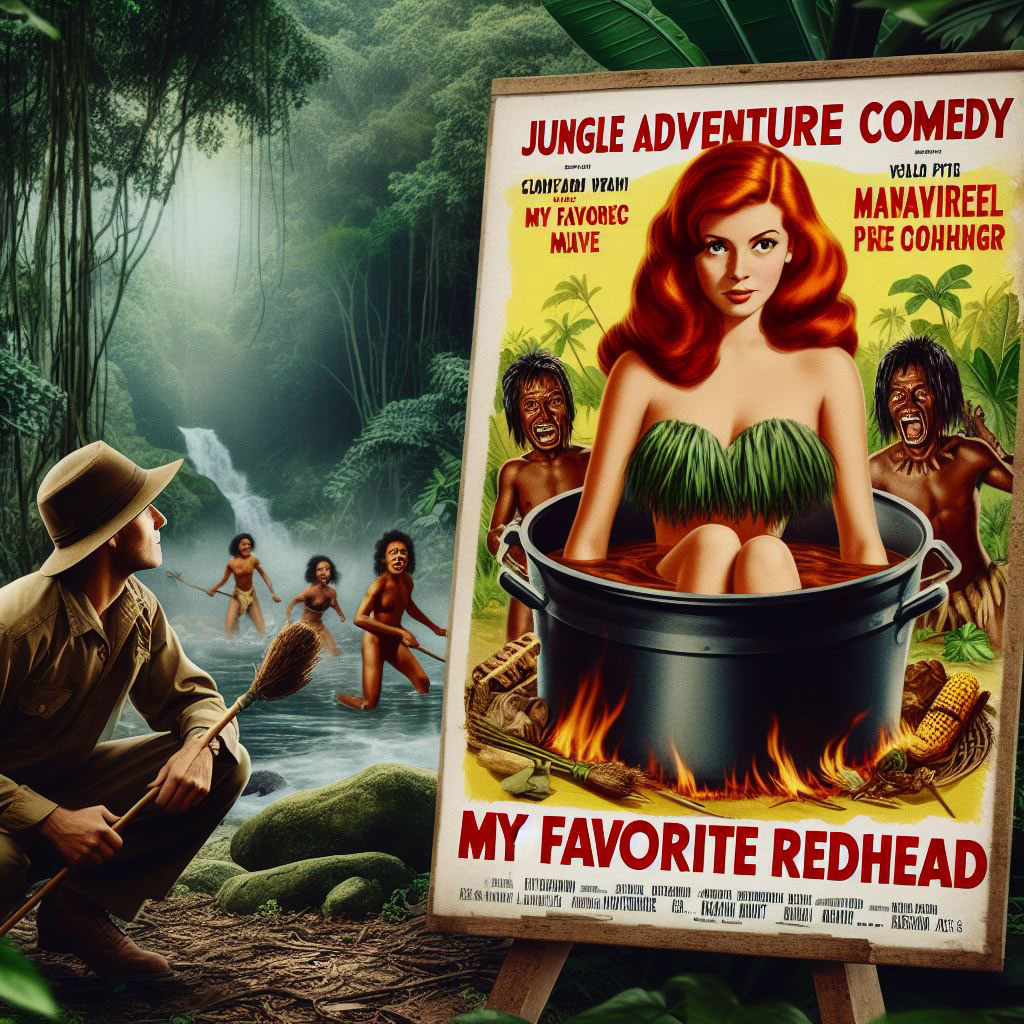 AI generated poster for the imaginary movie, "My Favorite Redhead."
